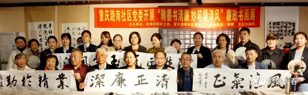 4月27日下午,南關(guān)區(qū)重慶路南社區(qū)黨委舉辦 “翰墨書(shū)清廉 妙筆頌清風(fēng)”為主題的廉政書(shū)畫(huà)展在圈樓古玩城吉寶齋開(kāi)展,展出該主題書(shū)畫(huà)作品30多幅;同時(shí)社區(qū)還組織了龍收書(shū)畫(huà)館的書(shū)畫(huà)家為參加此次活動(dòng)的警民共建單位、基層黨支部和黨員、群眾贈(zèng)送了書(shū)畫(huà)作品。