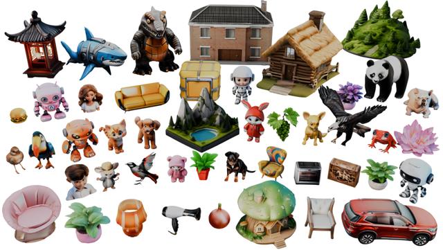 混元3D-1.0模型生成的3D資產(chǎn)|圖片來源:騰訊