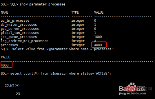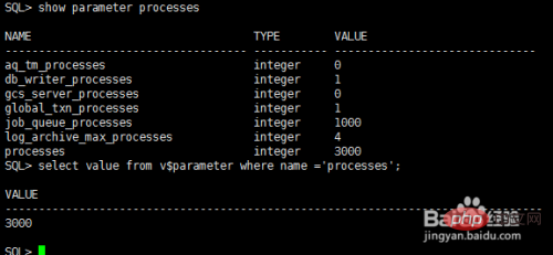 步驟四:查看數(shù)據(jù)庫設(shè)置的最大連接數(shù)和最大session數(shù)量,show parameter processes命令查看的是匯總的信息,也可以直接select value from v$parameter where name ='processes'; 語句查看,最大進(jìn)程連接數(shù)為4000.