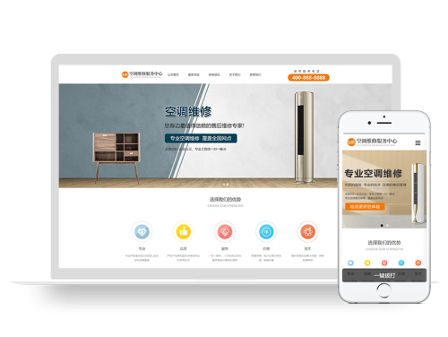 (自適應手機端)響應式pbootcms空調維修服務網站模板 空調安裝維修網站源碼下載